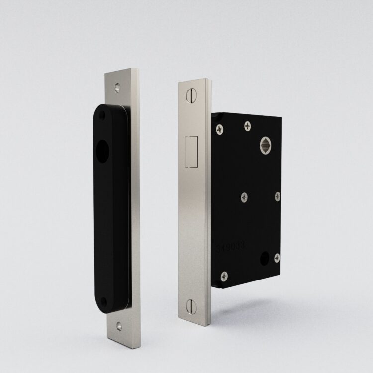 The Lowe #345M full mortise Magnetic interior passage lock is available in 1-3/4″, 2”, 2-1/4”, 2-1/2”, and 2-3/4” backsets as standard. Custom sizes available upon request. This lock is typically used on interior doors of all sizes and can be configured at the factory to be used with knobs or levers. Supplied with Magnetic strikeplate and dustbox, the faceplate is adjustable for beveled doors.